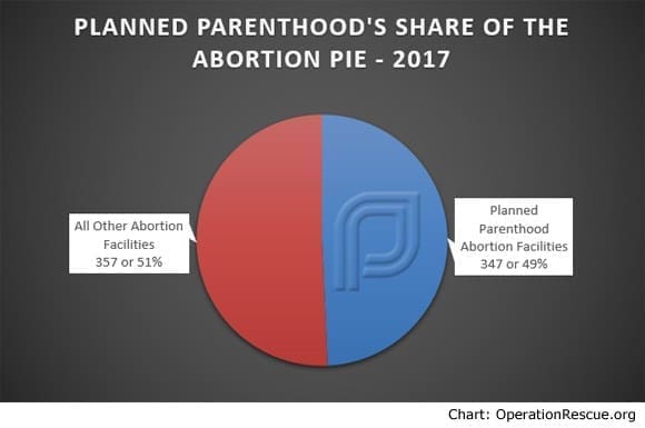 Not counting Planned Parenthood’s vast – but shrinking – network of referral clinics that do not offer abortions, Planned Parenthood facilities now account for 49% of all abortion facilities in the U.S. Nevertheless, they only account for 30.6% of all abortions done in the U.S.
