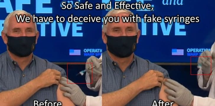 I have to say that I was not surprised to watch the “vaccination” of Vice President Mike Pence today. I specifically paused the video to see a before and after shot of the “needle” completely disappear, not into his arm, but apparently right back up into the syringe. Surgeon General Jerome Adams, Second Lady Karen … Continue reading Did Vice President Mike Pence Just Fake His Vaccination On Live TV? (Video)