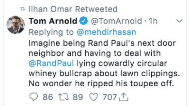 Ilhan Omar Retweets Washed Up Actor’s “Joke” About Violent Attack On Senator Rand Paul