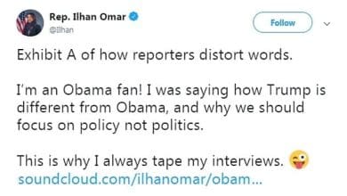 Ilhan Omar Deletes Her Tweet Claiming Politico Distorted Her Obama Comments