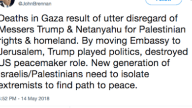 Obama’s Thug-In-Chief John Brennan blames Trump and Netanyahu for “Palestinian” deaths in Gaza